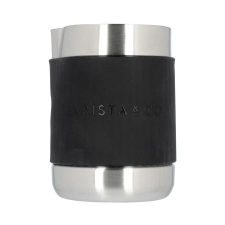 Dzbanek do spieniania mleka od Barista & Co, wykonany ze stali nierdzewnej, z silikonową opaską, bez tradycyjnej rączki. Praktyczny, dopracowany, o efektownym wzornictwie. Niezbędne narzędzie pracy każdego baristy.