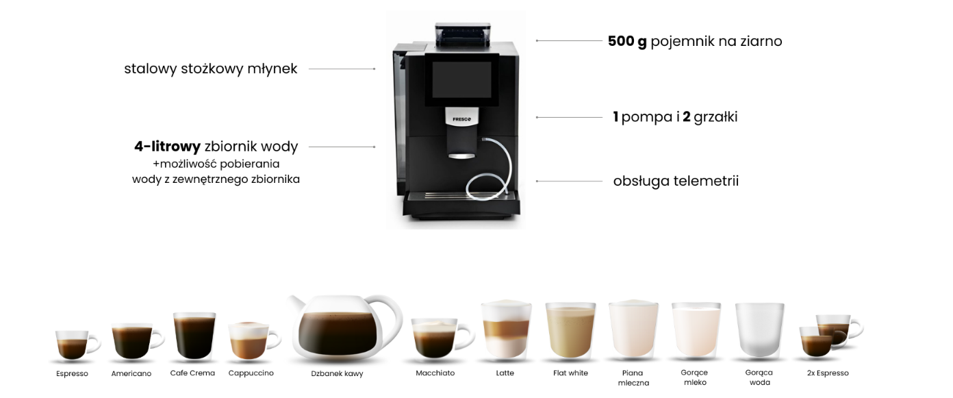Najnowsze technologie zastosowane w ekspresach Fresco ułatwiają pracę nie tylko użytkownikom ale również serwisantom. Funkcja telemetrii w ekspresie odpowiada za monitorowanie zużycia kawy, pozwala sprawdzać wykonane procesy konserwacyjne w ekspresie i efektywnie zaplanować jego przeglądy techniczne. Zautomatyzowane programy czyszczące są proste w obsłudze i szybkie do wykonania, regularne dbanie o ekspres przedłuża jego żywotność i zapobiega awariom.