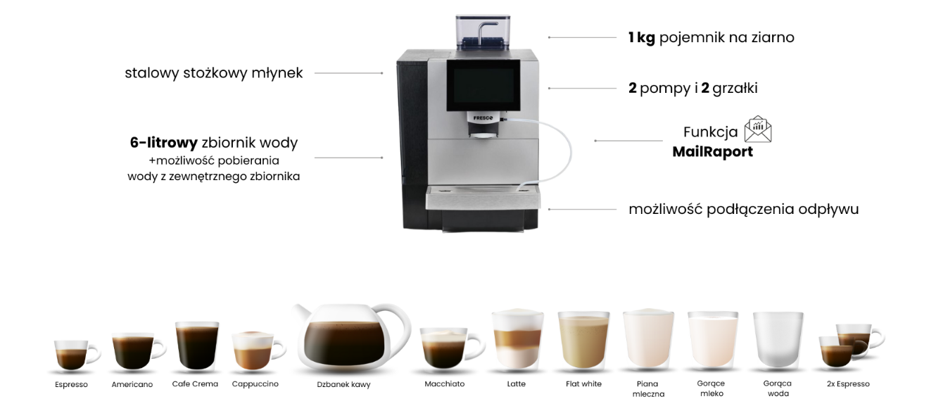 Połączenie nowoczesności i wydajności w jednym – tym cechuje się ekspres Fresco X85 Plus. Najnowsze urządzenie z tej serii, które doskonale wpasuje się do każdego wnętrza. Jego prosta, a zarazem niezwykle elegancka obudowa będzie idealnym elementem i wyposażeniem restauracji, hoteli oraz przestrzeni biurowych i lokali usługowych.