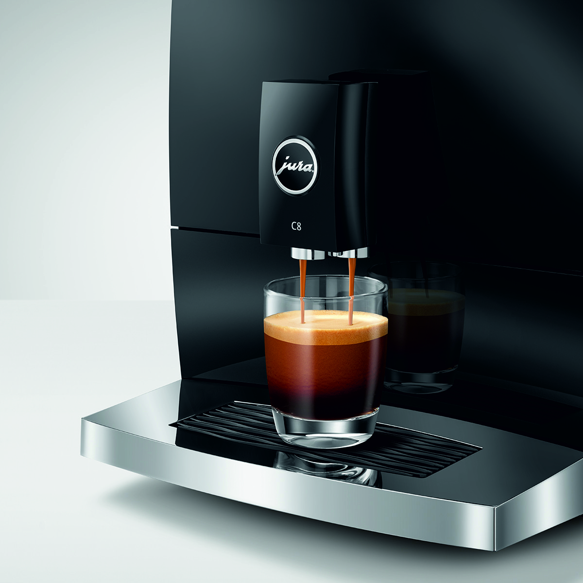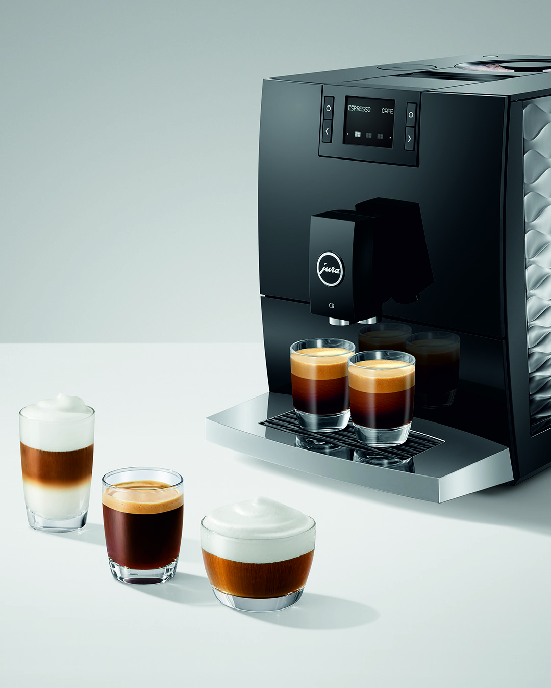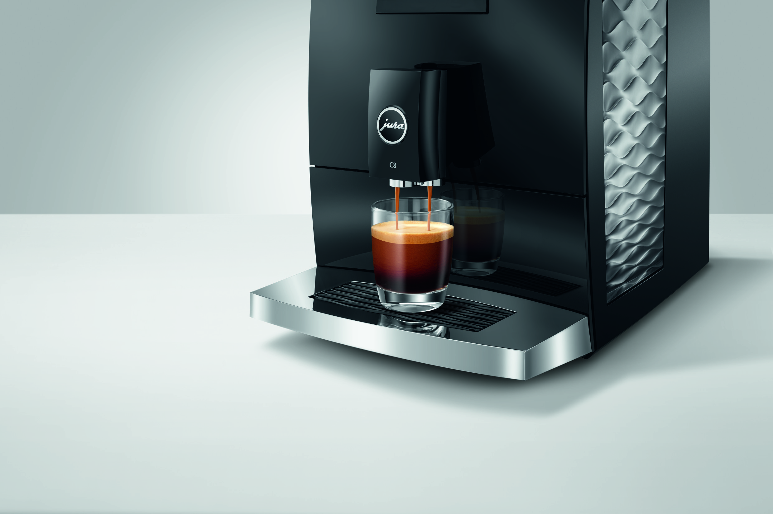 Model C8 reprezentuje nowy segment premium economy firmy JURA. Kompaktowy ekspres, który zapewnia maksymalną wydajność, zaprojektowany i wyposażony w elementy charakterystyczne dla segmentu premium, serwujący niezapomniane doznania kawowe.