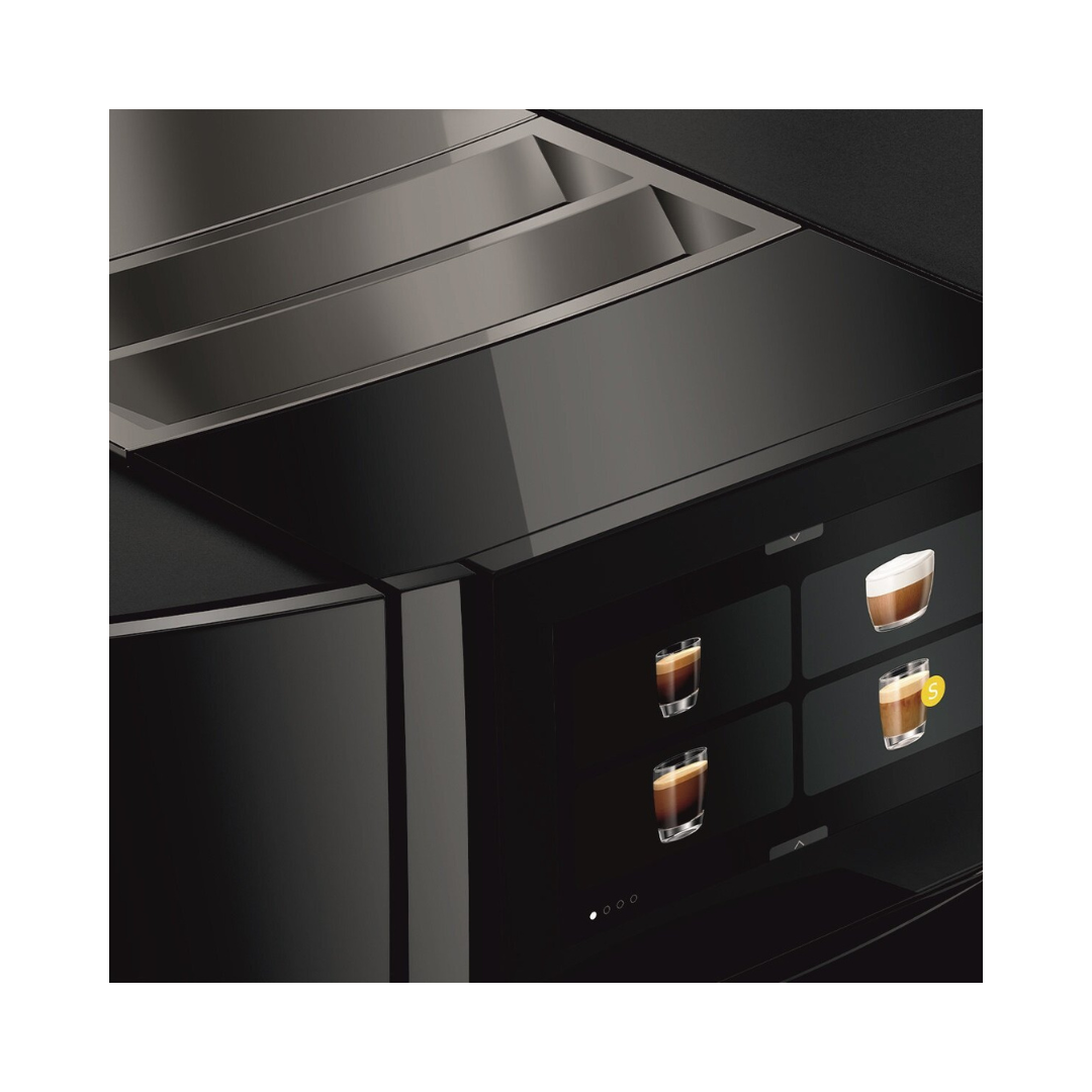 Wzornictwo linii J uosabia przejrzystość i symetrię. Dzięki eleganckiemu wykończeniu przedniej części w kolorze Night Chrome, design ekspresu J10 z pewnością sprawia niezapomniane wrażenie. Jakość i doświadczenie tego wyjątkowego automatycznego ekspresu do kawy można zarówno zobaczyć, jak i poczuć dzięki zastosowaniu wysokiej jakości materiałów precyzyjnemu wykonaniu. Starannie rozmieszczone chromowane akcenty, zachęcający interfejs użytkownika i podświetlenie aromatycznego gotowego napoju – wszystko to razem tworzy obraz ogólnej harmonii i oddaje wyższość tego ekspresu do kawy klasy premium.