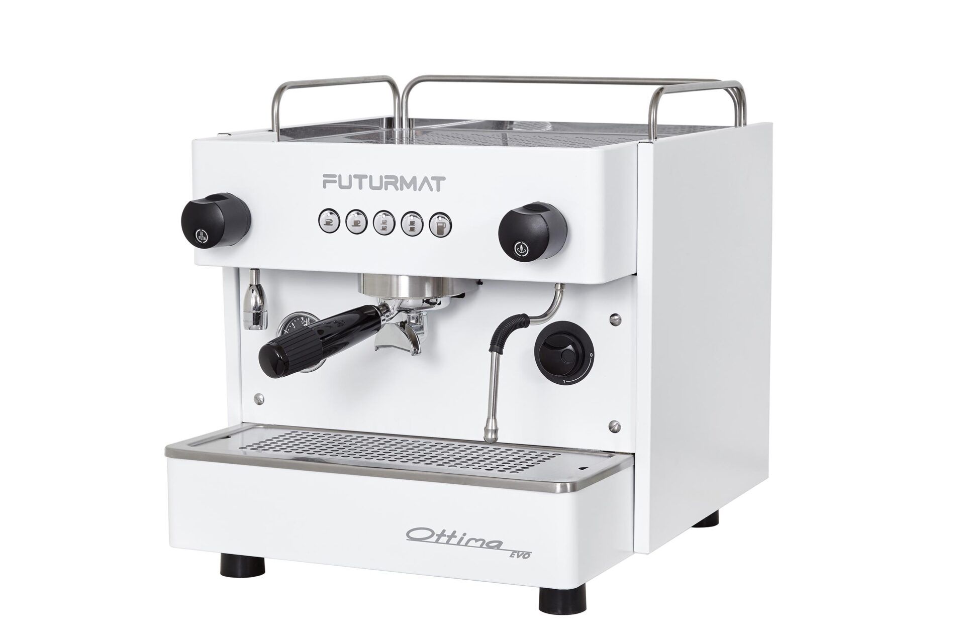 Pasja i harmonia w każdej filiżance kawy. Futurmat Ottima Evo to ekspres do kawy dedykowany punktom gastronomicznym chcącym oferować wysokiej jakości napoje kawowe z łatwego w obsłudze i niezawodnego ekspresu. Jego elegancki i trwały design sprawia, że idealnie nadaje się do każdego miejsca.