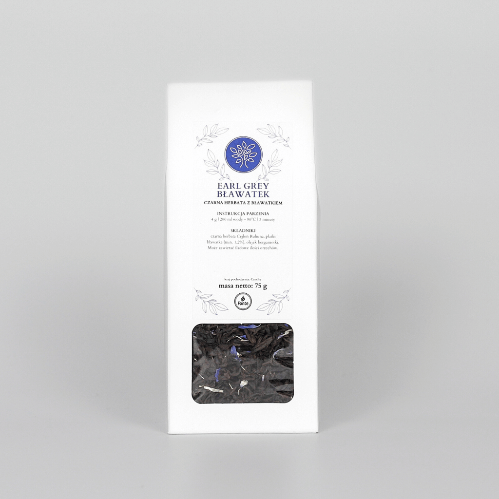 Czarna herbata o świeżym smaku bergamotki połączona z płatkami bławatka. Earl Grey Blawatek to esencja elegancji i subtelności w filiżance herbaty. Pozwól sobie na chwilę błogiego odpoczynku i delektuj się jej wyjątkowym smakiem.