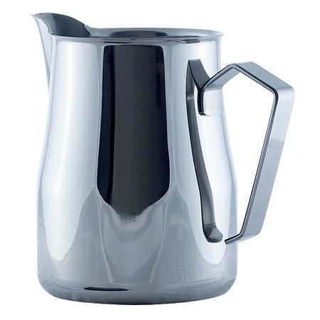 Dzbanek do spieniania mleka od Motta, wykonany ze stali nierdzewnej.