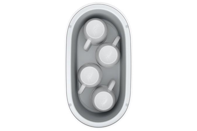 Podgrzewacz do filiżanek S o wymiarach 13,9 x 19,9 x 25,8 cm łatwo zmieści się w każdym miejscu. Proste przełączanie za pomocą przycisku do włączania/wyłączania sprawia, że ten prosty, ale równocześnie elegancki towarzysz każdego automatycznego ekspresu do kawy jest błyskawicznie gotowy do pracy.