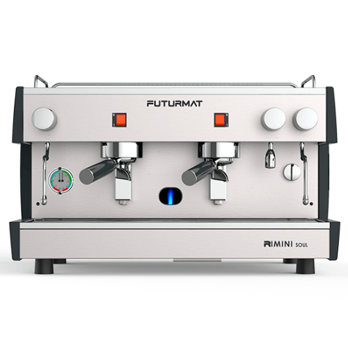 Rimini Soul Futurmat to maszyna, której design jest dostosowany do współczesnych czasów i trendów, a wykończenie frontu ze stali nierdzewnej ułatwia doskonałe czyszczenie.