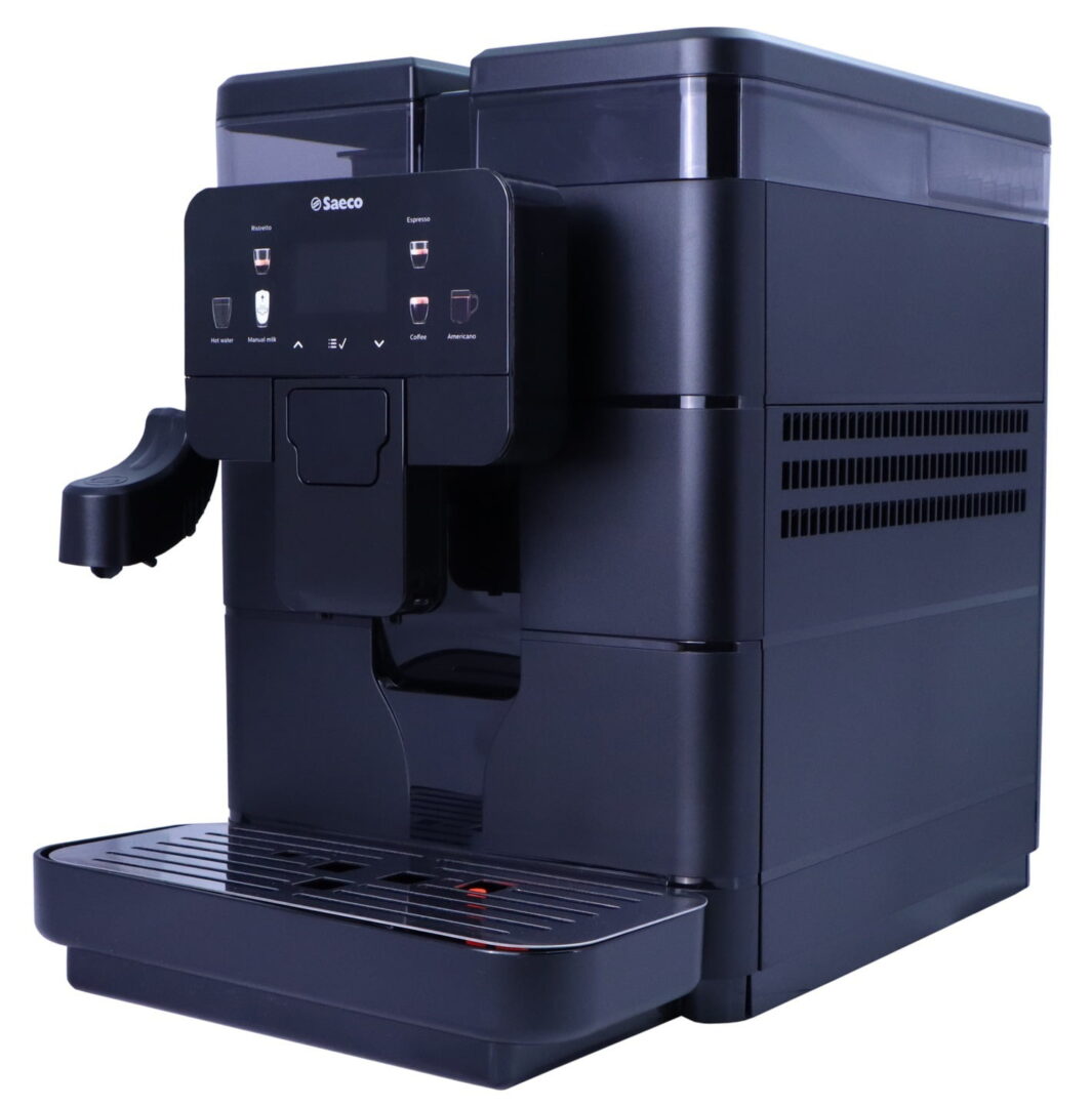 Ekspres Saeco New Royal PLUS idealnie nadaje się do mniejszych biur, mogąc przygotować nawet do 30 kaw dziennie.