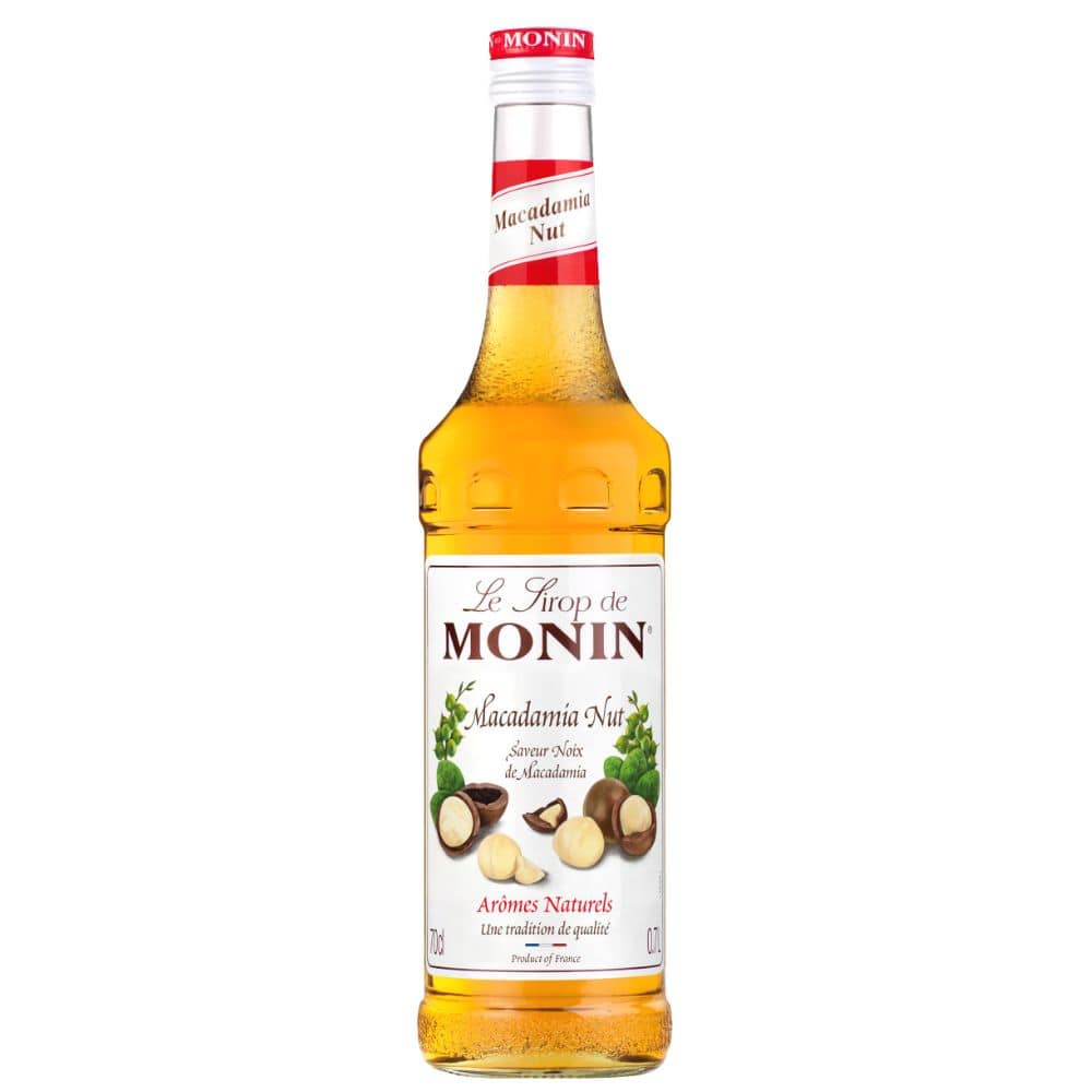 Syrop orzech makadamia francuskiego producenta MONIN w szklanej butelce o pojemności 0,7 litra. Syrop o bursztynowej barwie i wyjątkowym smaku orzechów makadamia, bardzo dobrze sprawdzi się jako dodatek do kawy, kakao i napojów deserowych. Mała ilośc syropu nada przyrządzanemu napojowi wyrazisty smak orzecha.